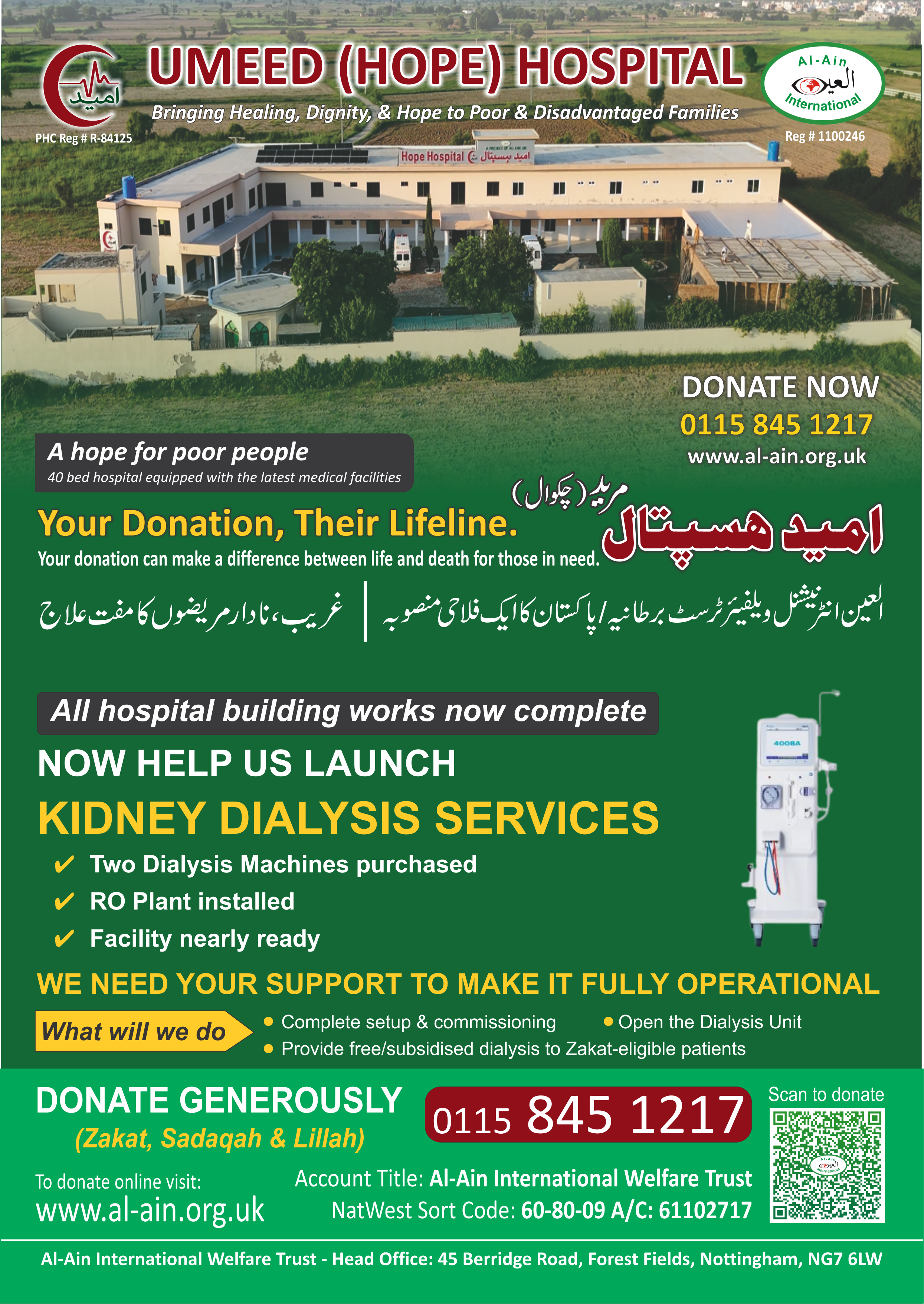 Give whatever you can to help run & build the Hope Hospital. A 100 bed facility, is taking shape slowly and surely. Contribute as little as £3 for medicine.